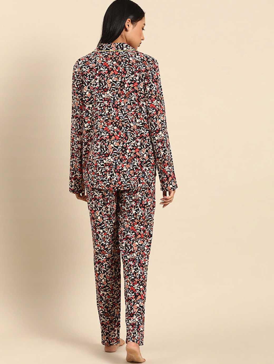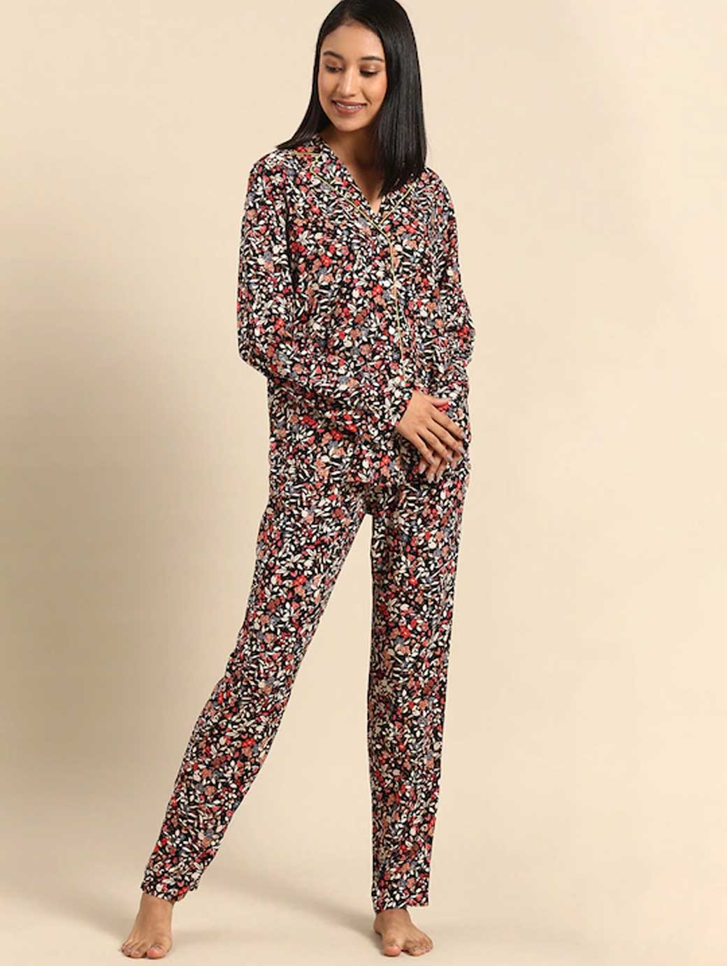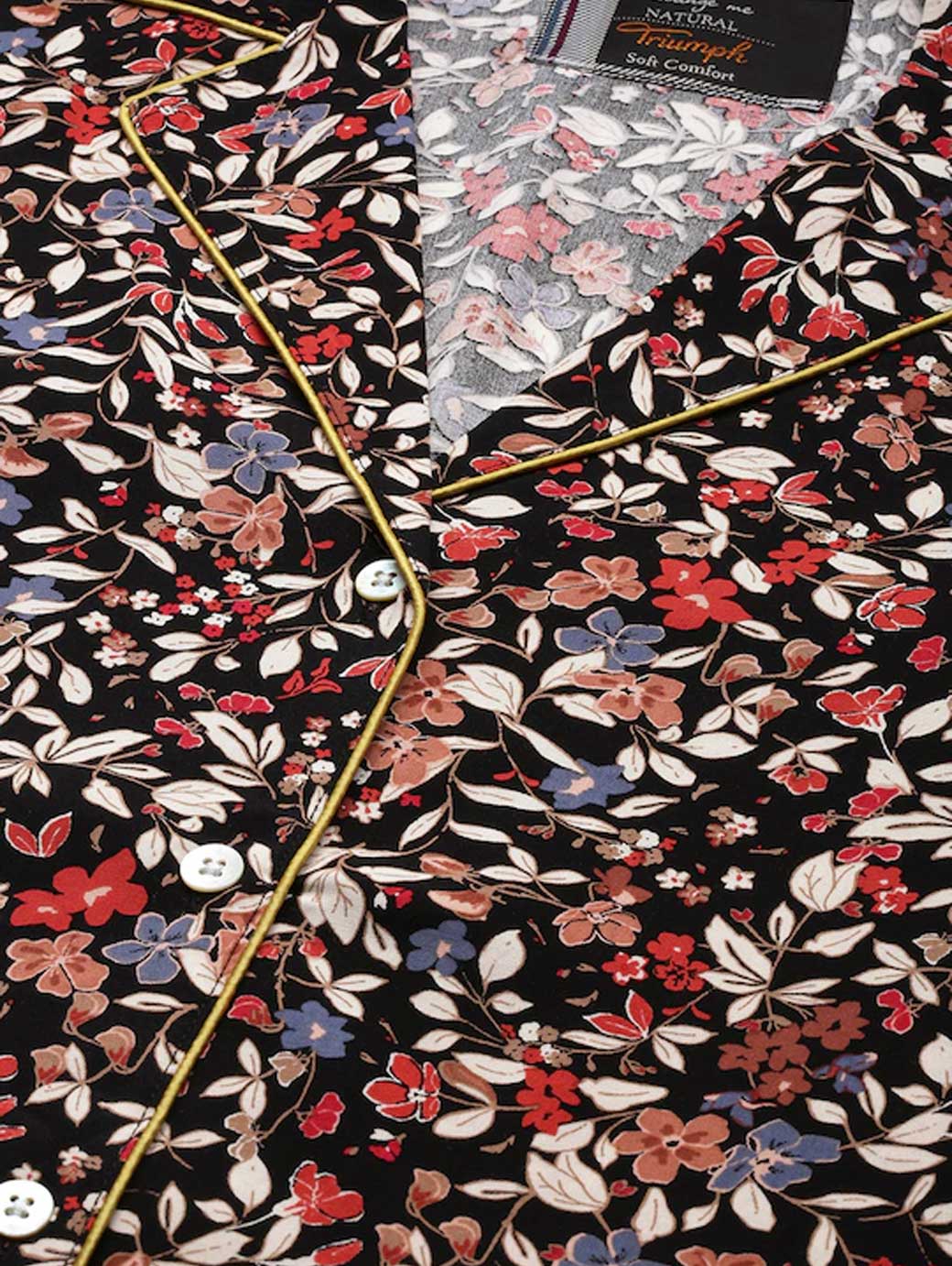 The Boyfriend Print series from the Lounge Me- Natural series, created with a premium quality natural fabric light in weight and durable. Comfortable to wear, easy-care and amazingly long lasting, these versatile styles can be easily mixed and matched with other Homewear styles.; These premium woven viscose pajamas with all-over print and contrast piping, have a stylish, sophisticated boyfriend shape.; The trousers have side seam pockets. Made from Viscose which has a natural origin, a superb drape and feel and retains its brilliant colours.