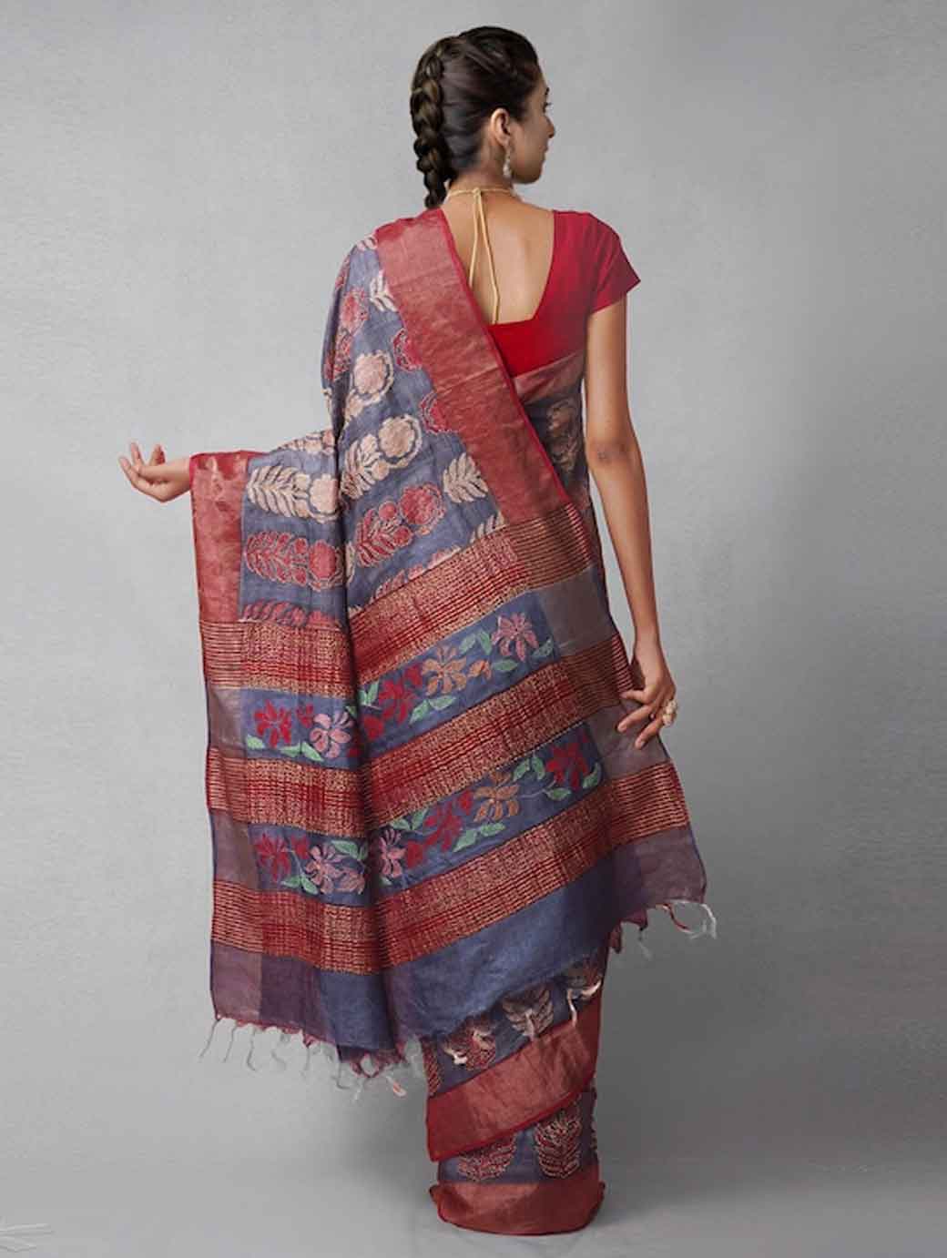 The blouse worn by the model might be for modelling purpose only. Check the image of the blouse piece to understand how the actual blouse piece looks like.