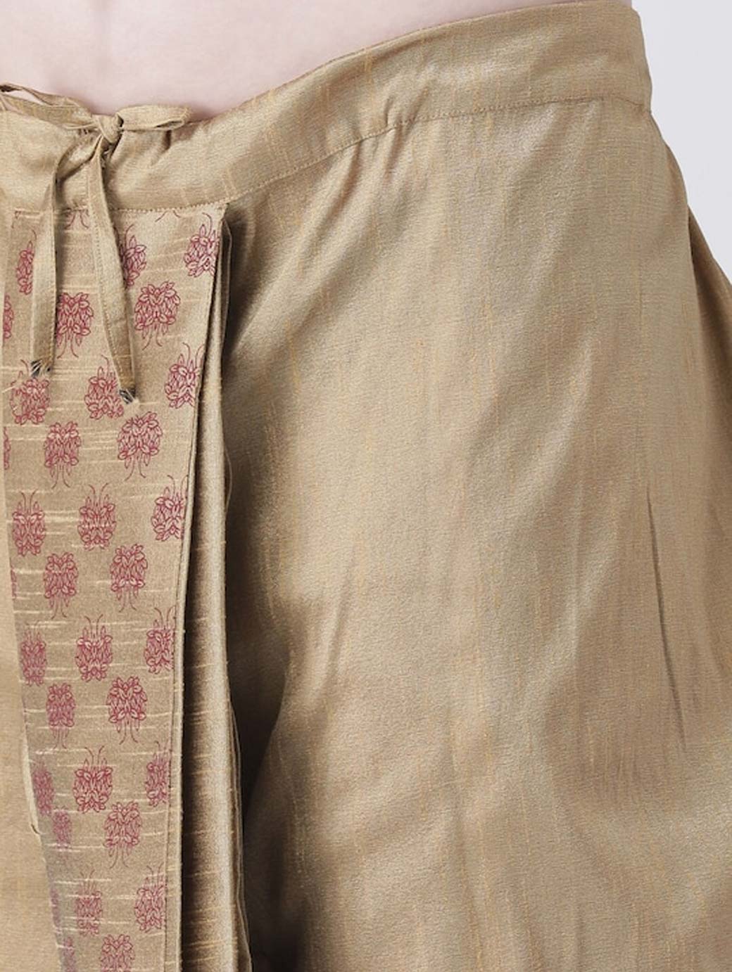 Beige and maroon printed regular-fit dhotis, with gathered and pleated detail, has a waistband with a drawstring fastening Disclaimer: Product color may slightly vary due to photographic lighting sources or your monitor settings
