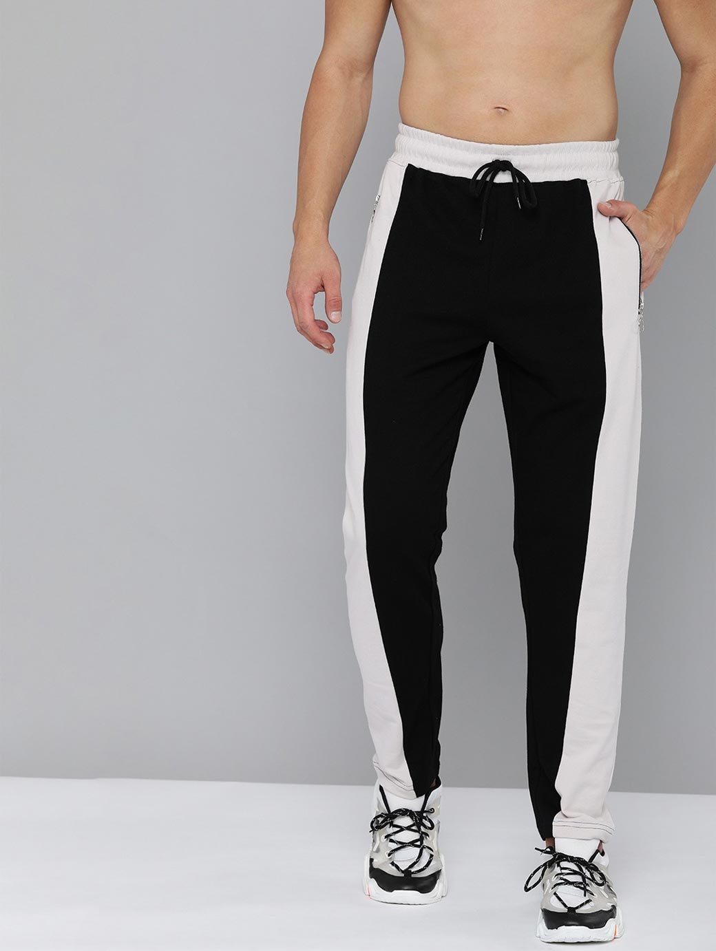 Men Black & White Pure Cotton Track Pants