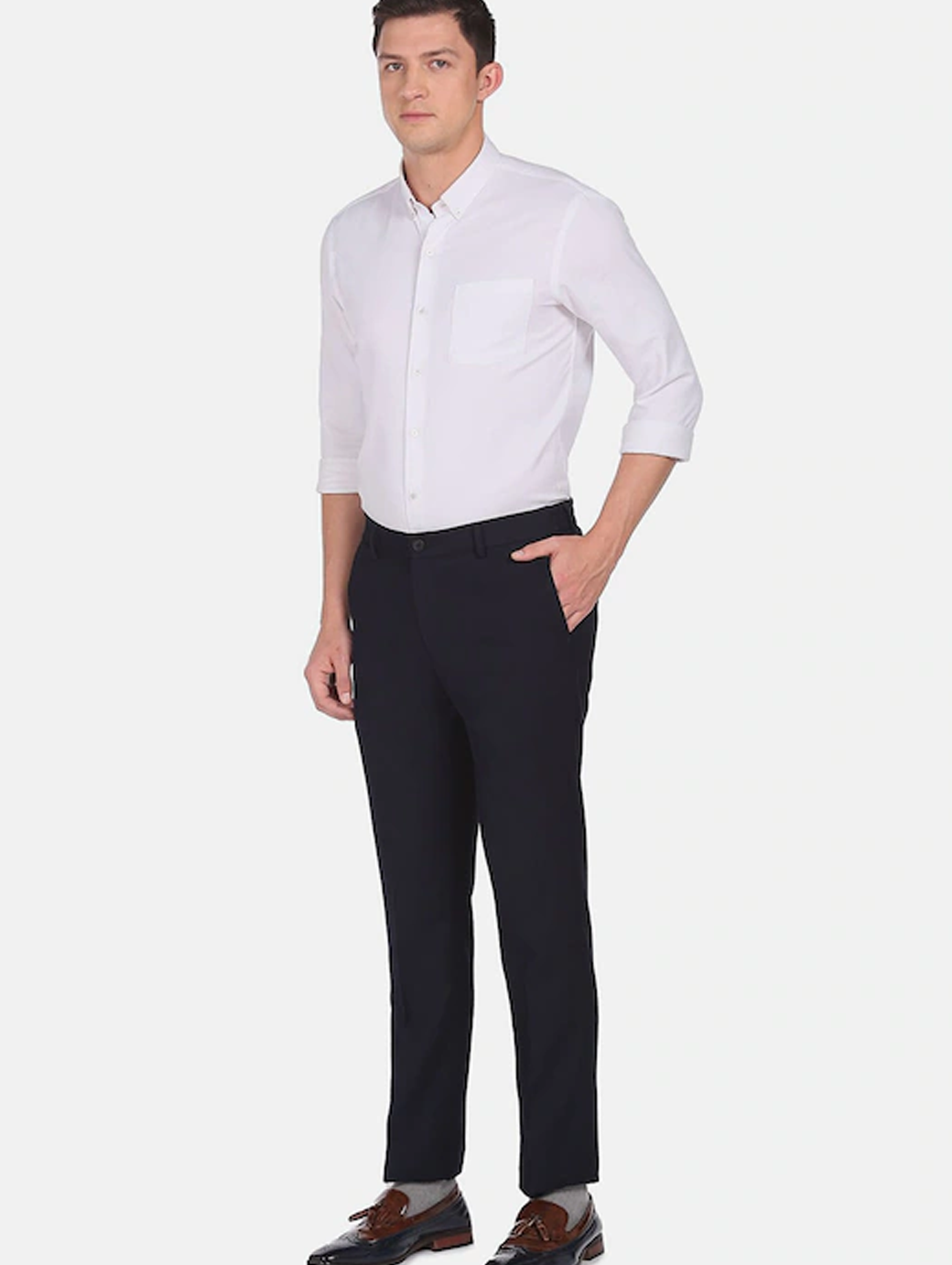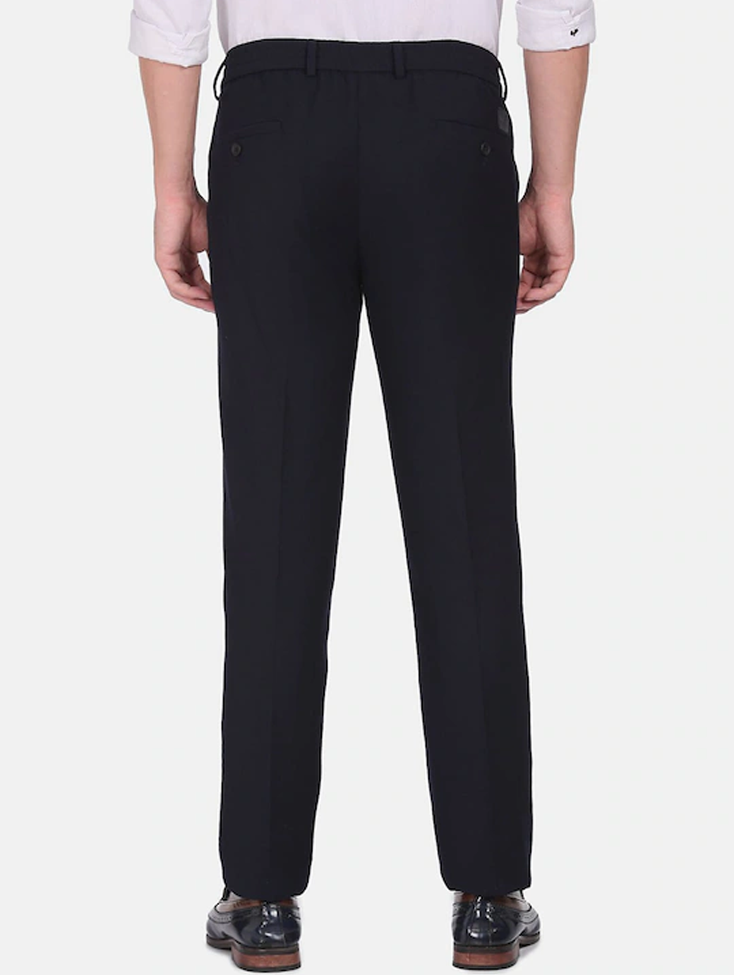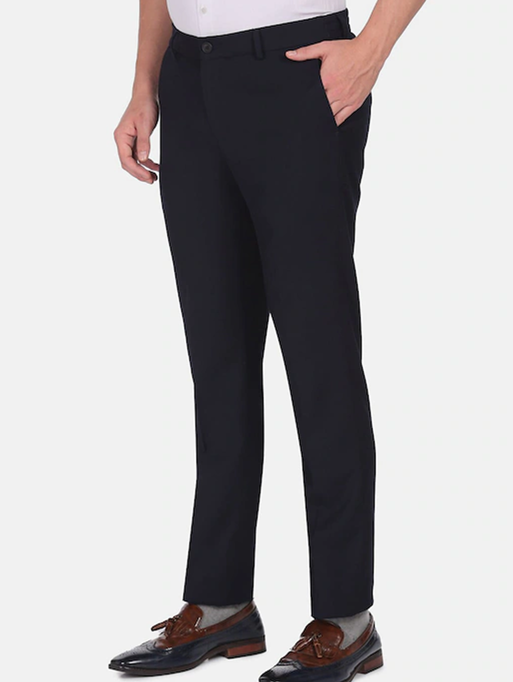 Men Blue Solid Slim Fit Cotton Formal Trousers