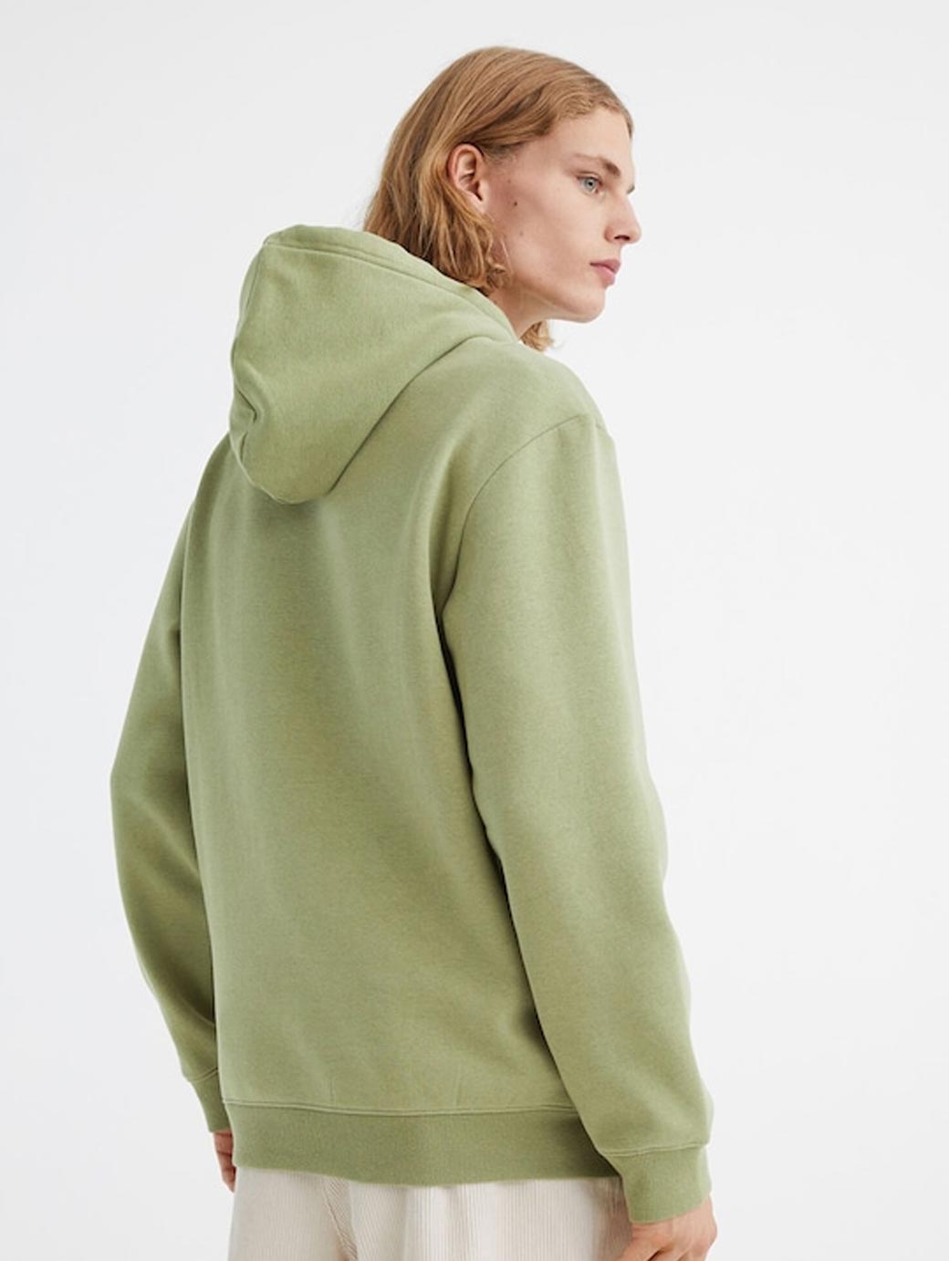 Long-sleeved hoodie in soft sweatshirt fabric with a kangaroo pocket, double-layered drawstring hood with a wrapover front, and ribbing at the cuffs and hem.