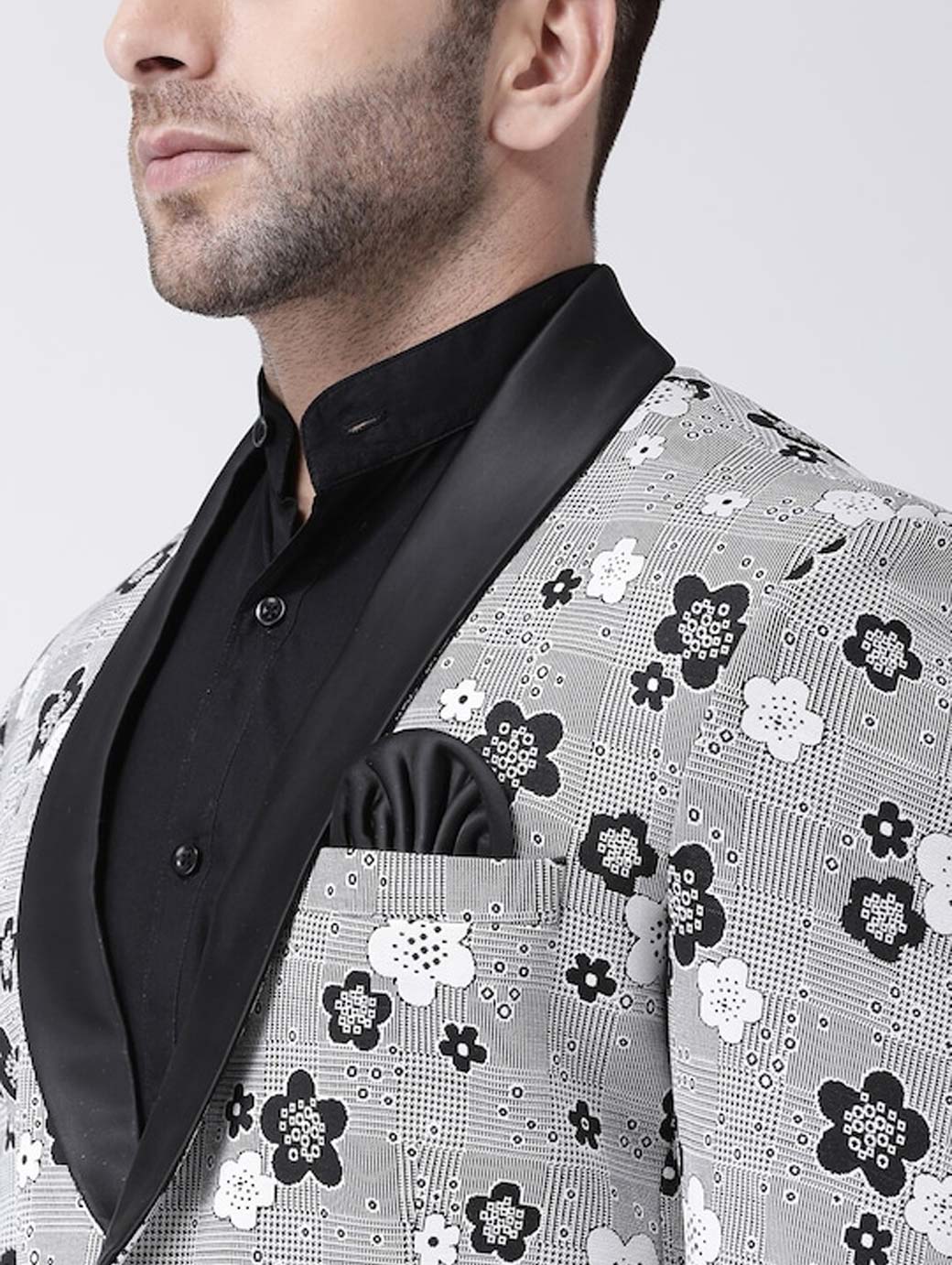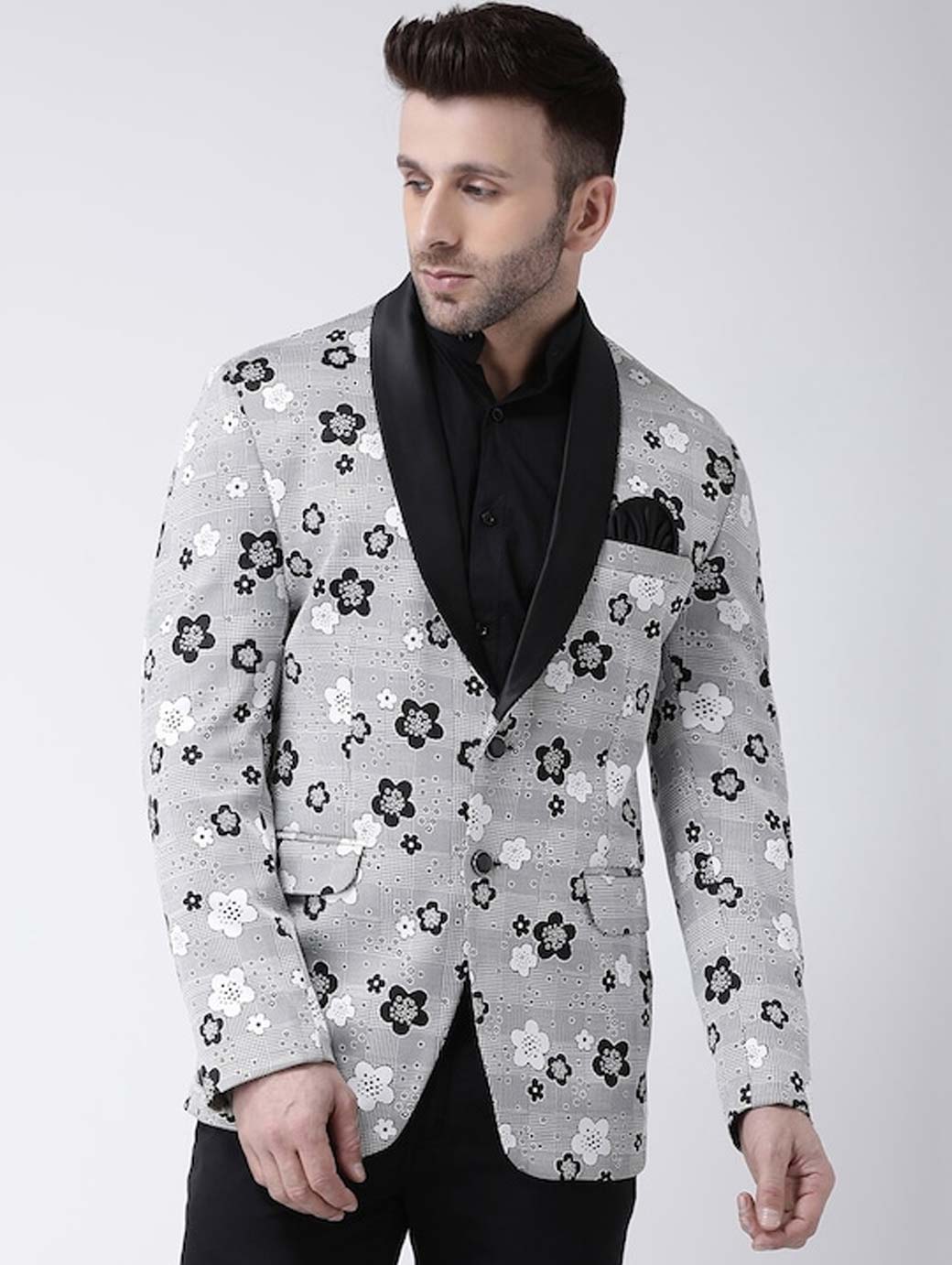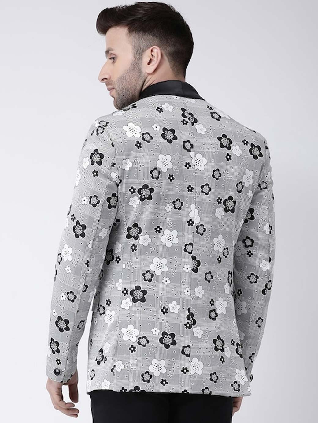 Men Grey Printed Single Breasted Blazer