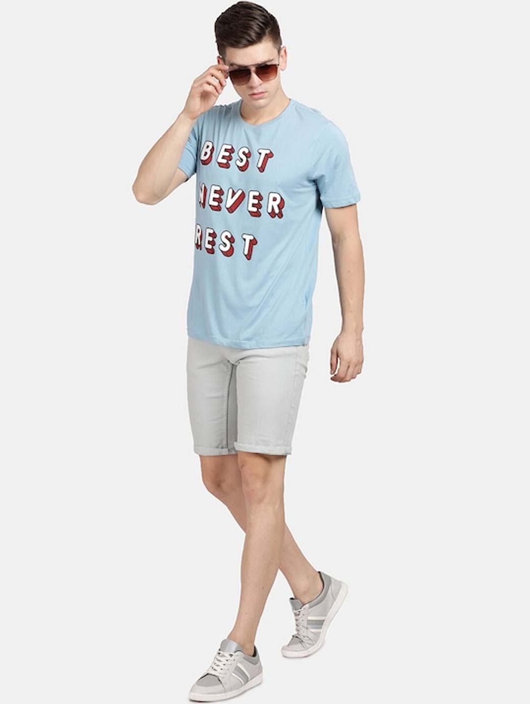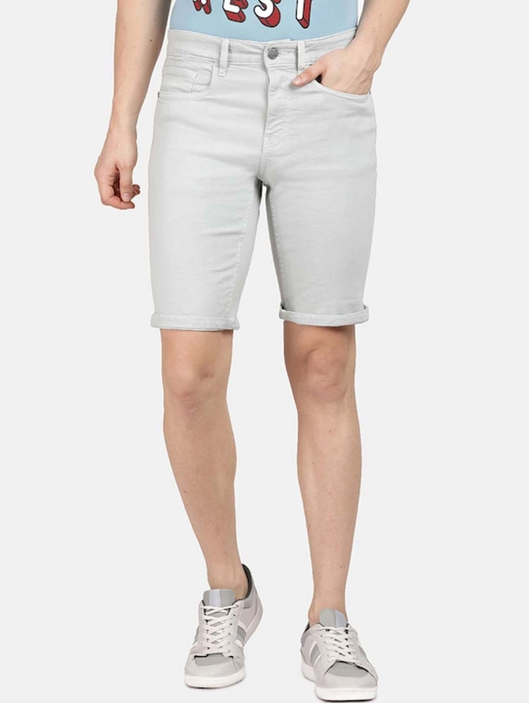 Men Grey Slim Fit Mid-Rise Denim Shorts