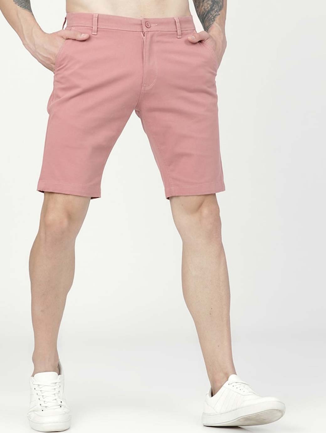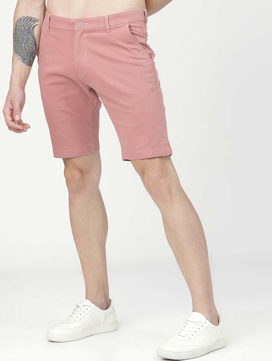 Expand your summer and spring wardrobe collection with these super-modish pink solid shorts. Keep hip this season with this pair of pink shorts and a white tee.