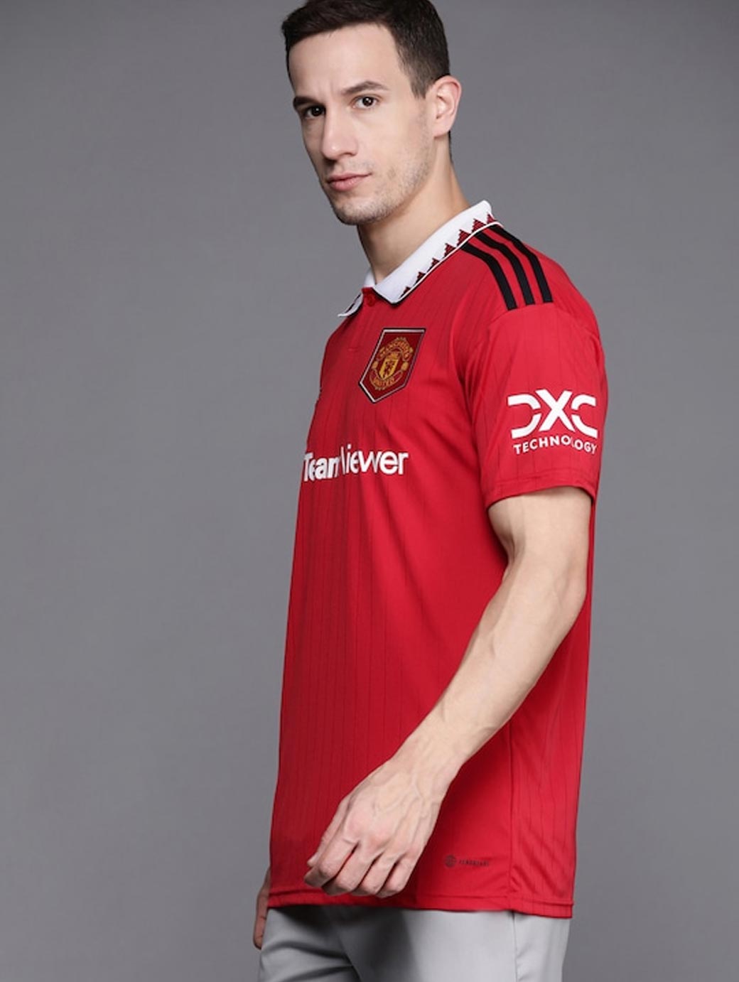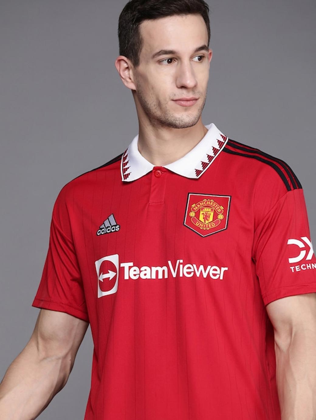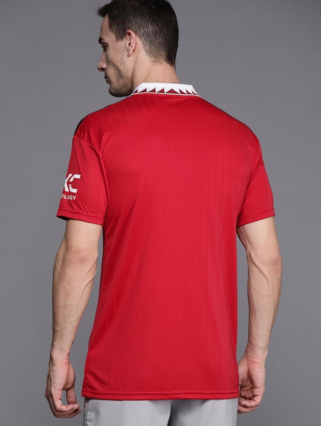 Red Tshirt for men Typography striped Regular length V-neck Short, regular sleeves Knitted polyester fabric