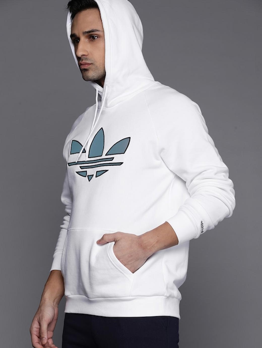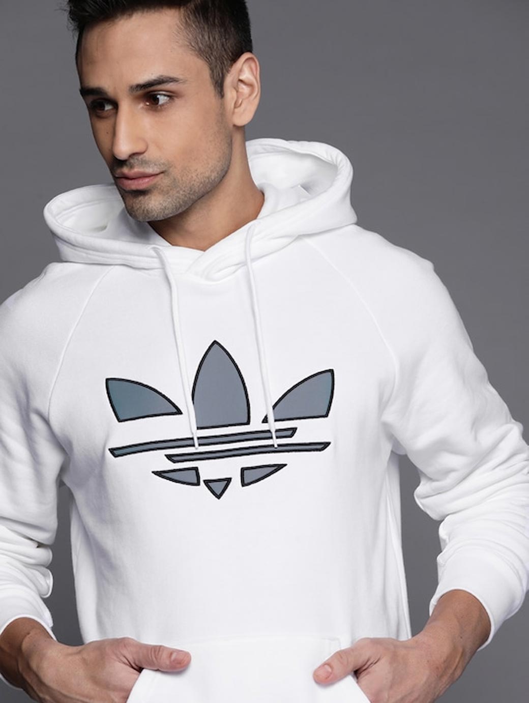 Product design details: White & grey adicolor shattered trefoil cotton hoodie Regular fit Drawcord-adjustable hood 100% cotton French terry Kangaroo pocket Ribbed cuffs and hem French terry Warranty: 3 months Warranty provided by brand/manufacturer About ADIDAS Originals Adicolor Shattered Trefoil Hoodie The hoodie is a tried-and-true staple. A champion of lazy-day comfort and a pioneer of casual style. This adidas hoodie is all those things, but something new too. A Trefoil stands out on the front, with a modern deconstructed look. Because you don't do anything basic. This is pure original. By buying cotton products from us, you're supporting more sustainable cotton farming.
