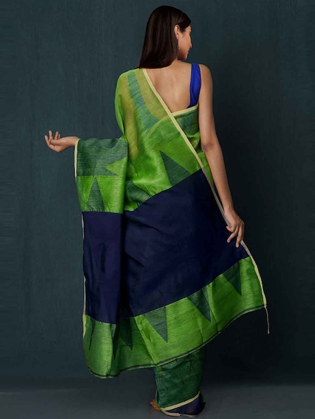 Navy Blue & Blue Silk Cotton Jamdani Saree