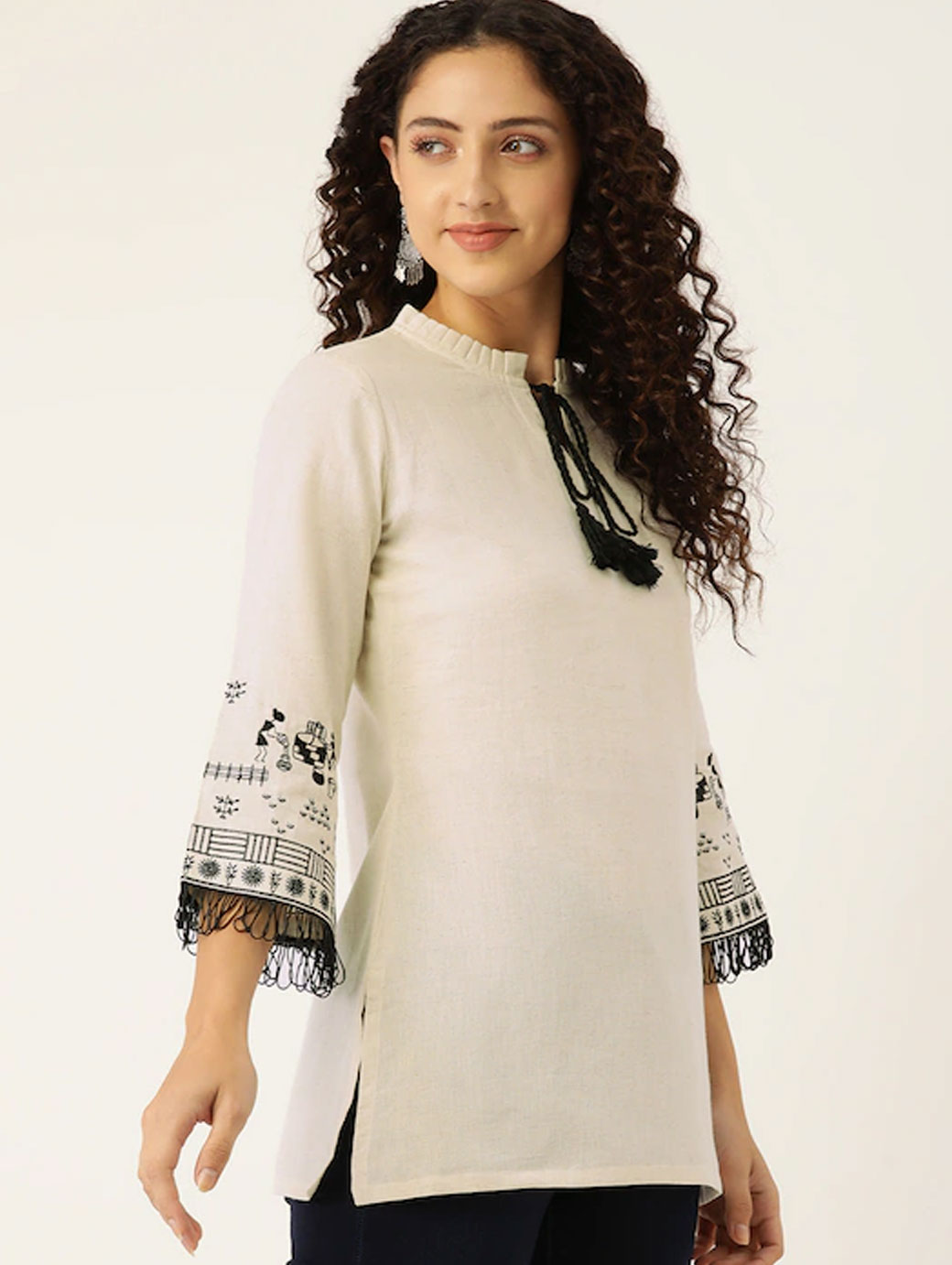 Off white regular peplum top Self design self design Shoulder straps, sleeveless, shoulder straps sleeves Woven.