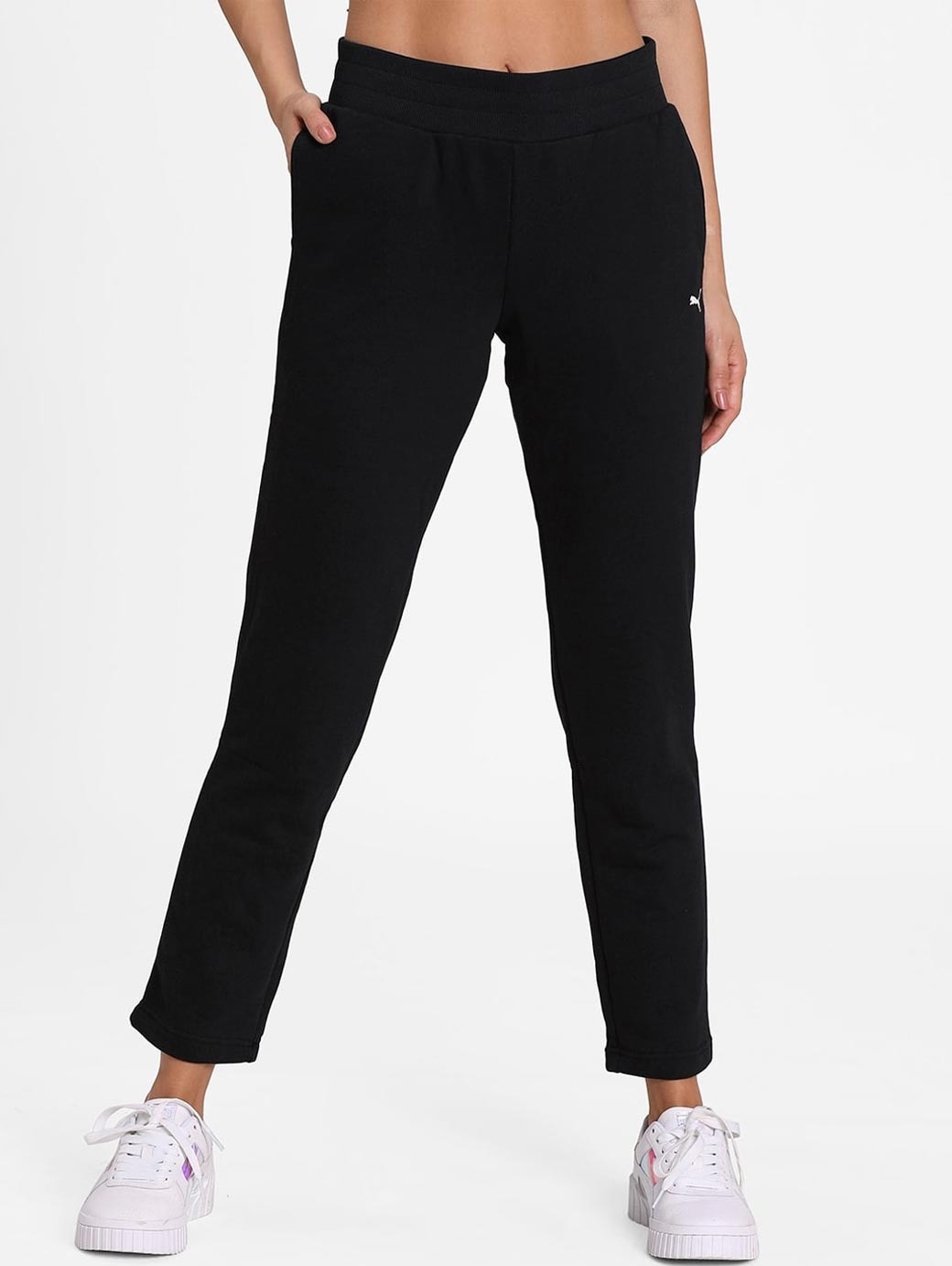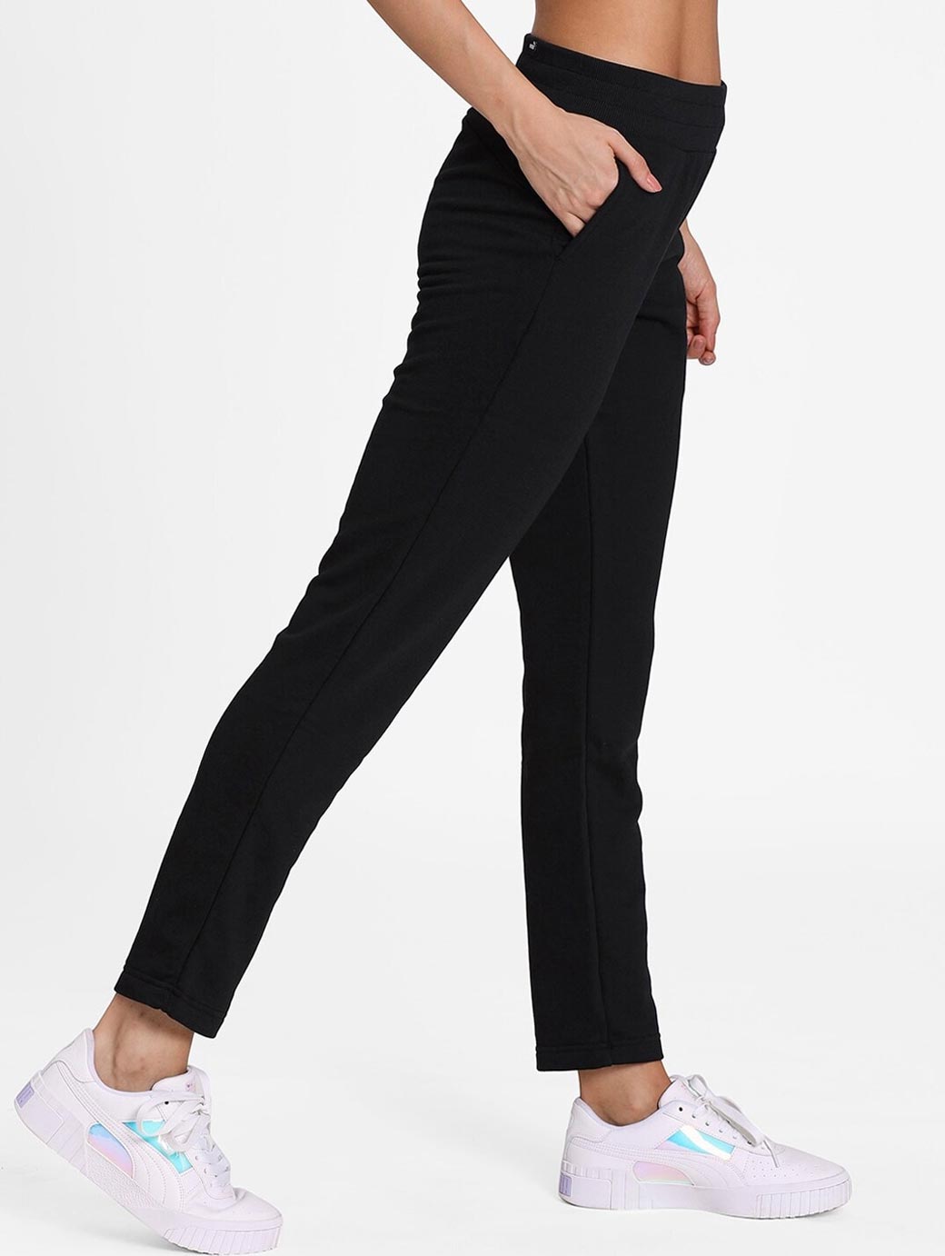 Black solid regular-fit mid-rise track pants, has an elasticated waistband with slip-on closure and two pockets