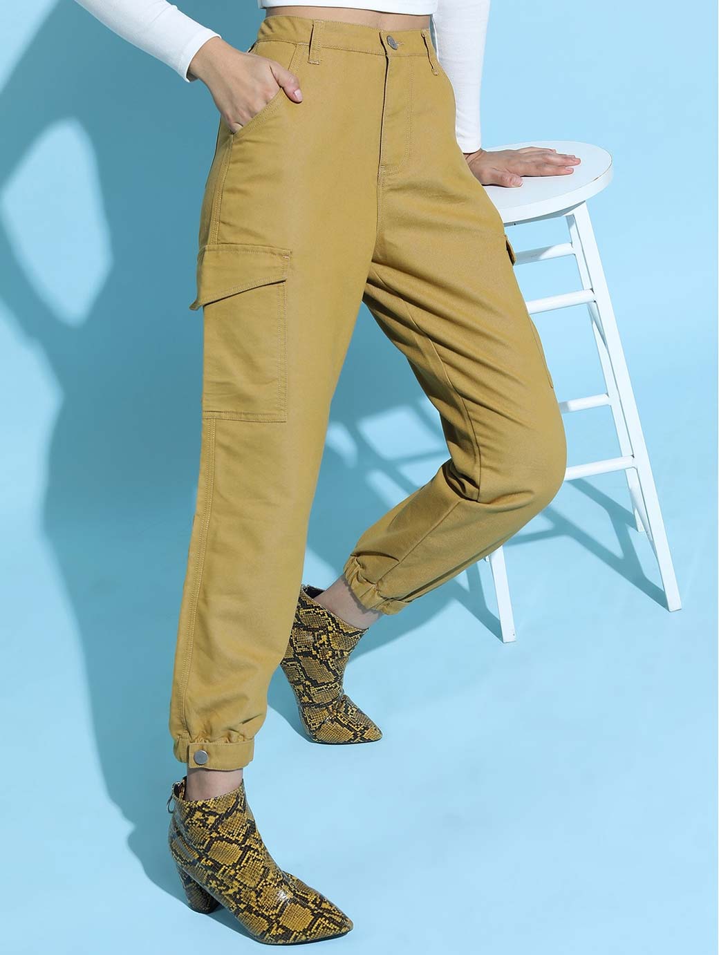 Women Olive Green Jogger Low Distress Jeans