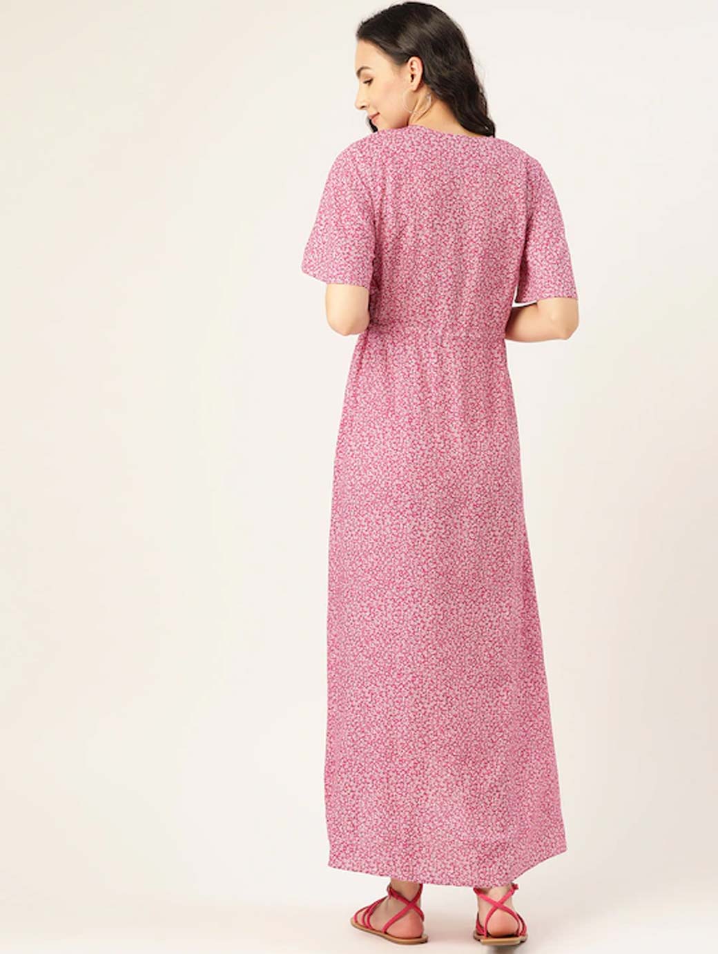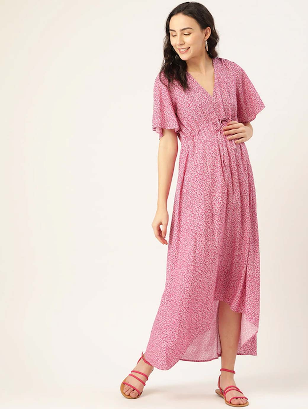 Women Pink & White Printed Sustainable Maternity High-Low Maxi Dress