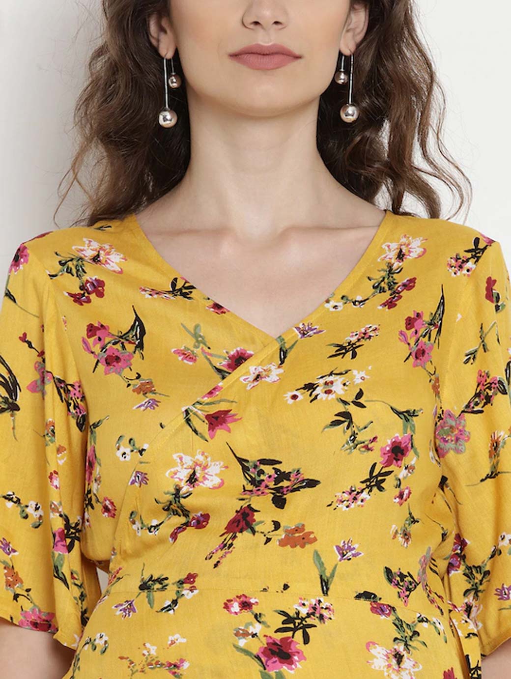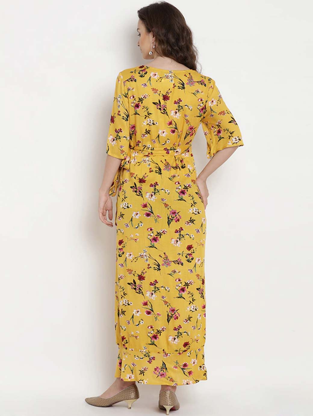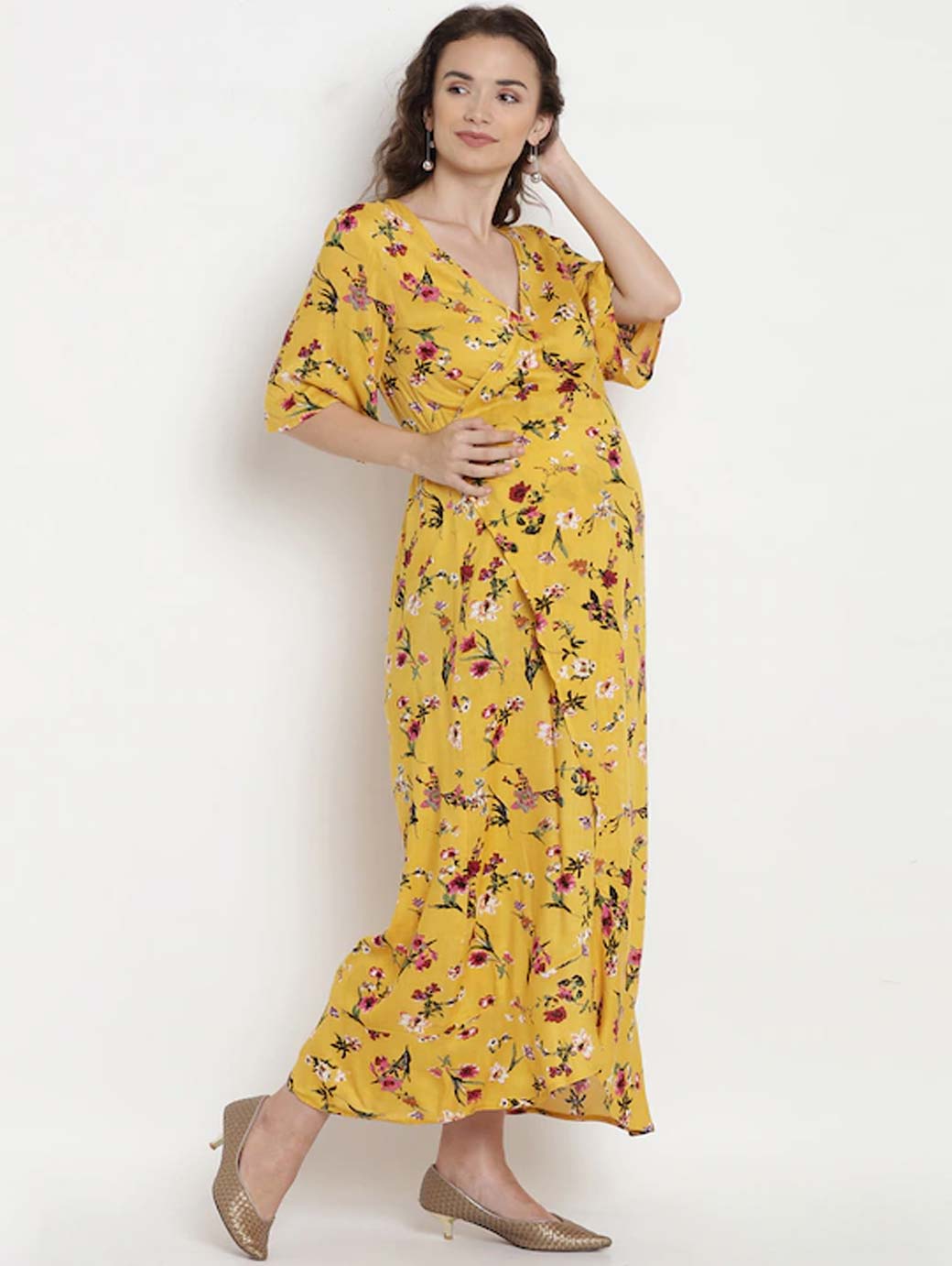 Women Yellow Printed Maternity Wrap Dress